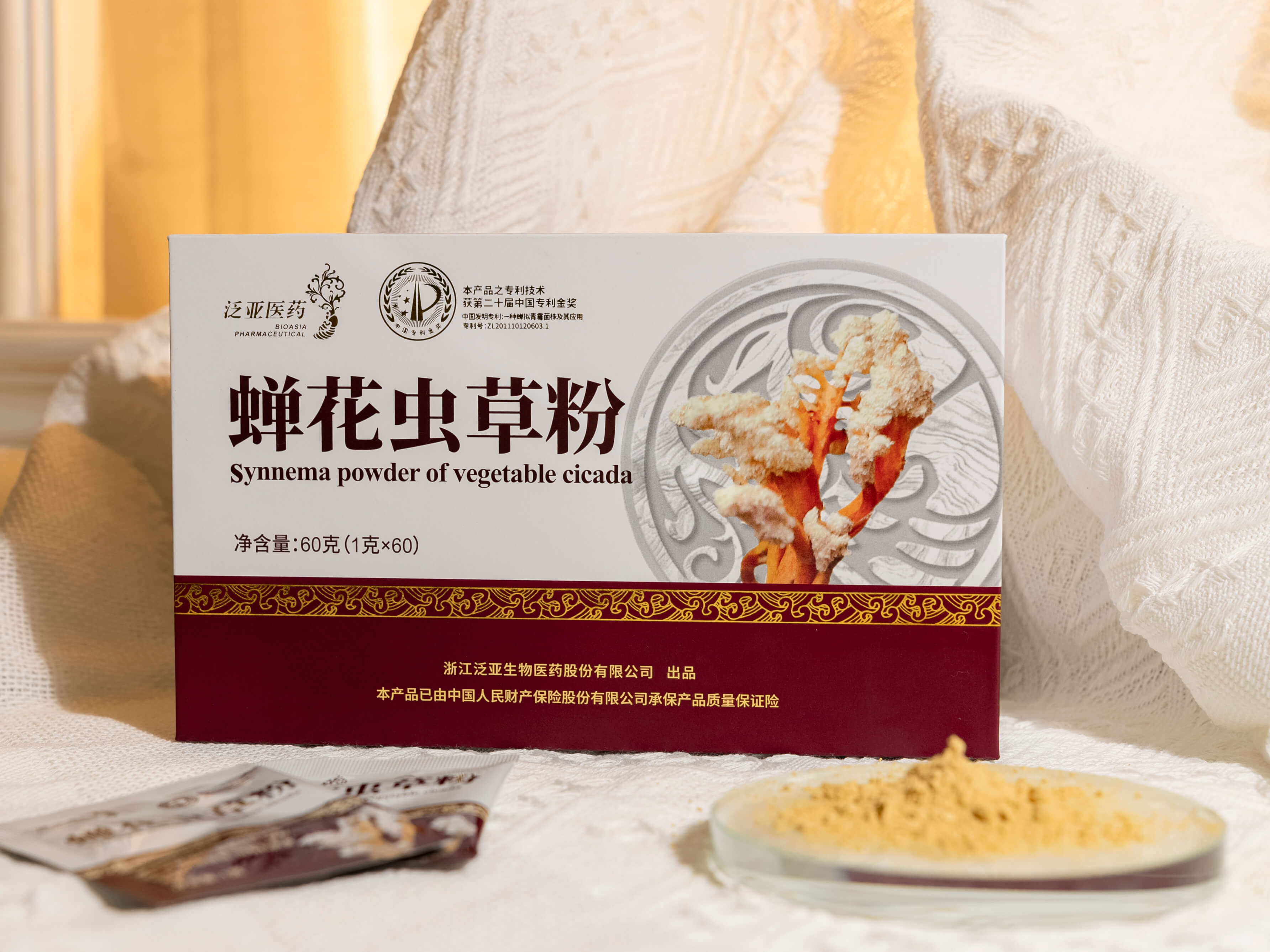 蝉花虫草,又称蝉花、金蝉花, 是蝉拟青霉寄生在“知了” 幼虫身上而形成的“虫草真菌”,是一味传统珍稀中药材。蝉花虫草有着悠久的药用历史,早在南北朝就有了加工食用蝉花的记录,《本草纲目》等古代医书也对蝉花的治病和养生做了重要记载。现代研究表明,金蝉花有免疫调节、改善肾功能、脂类代谢调节、抗肿瘤、促进造血、提升机体的营养状况、抗疲劳抗应激、解热、镇痛、催眠、滋补强壮、抗衰老、抗氧化、降压、降血糖、抗真菌等作用。